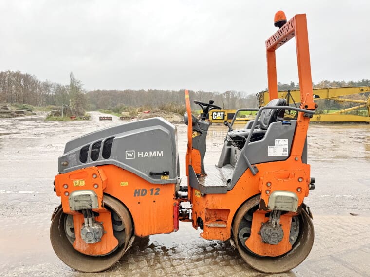 Quizás el mejor ejemplo de maquinaria diseñada para este reto es el HAMM HD 12 VV, un rodillo de doble tambor especialmente concebido para obras urbanas, trabajos viales ligeros y operaciones de mantenimiento que exigen precisión y fiabilidad. Su diseño compacto lo convierte en un aliado natural para proyectos donde el espacio de maniobra es limitado, como calles estrechas o áreas con alta densidad de servicios urbanos. El sistema articulado de tres puntos asegura un reparto uniforme del peso y un comportamiento estable incluso en superficies irregulares o con pendiente, garantizando acabados de calidad sin comprometer la seguridad del operador.