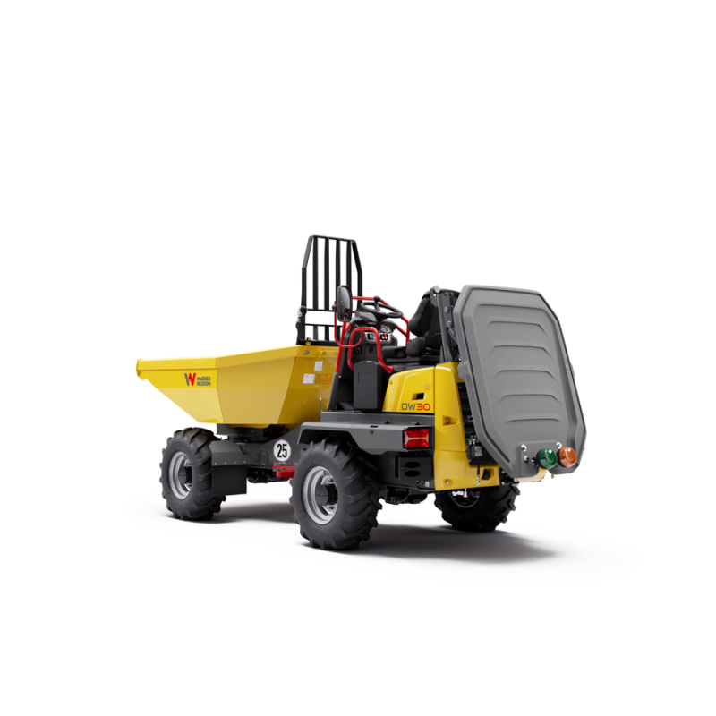 El DW30 de WACKER NEUSON es un dúmper sobre ruedas que combina seguridad y versatilidad para múltiples aplicaciones. Equipado con una cabina o una barra antivuelco, y opciones como una tolva para hormigón o un volquete giratorio, este vehículo se adapta a diferentes necesidades en la obra. Con una capacidad de carga de hasta 3 toneladas y dimensiones compactas, es eficiente incluso en áreas de difícil acceso. La tolva de hormigón opcional cuenta con una chapa de vertido para una colocación precisa del material durante los trabajos de hormigonado.